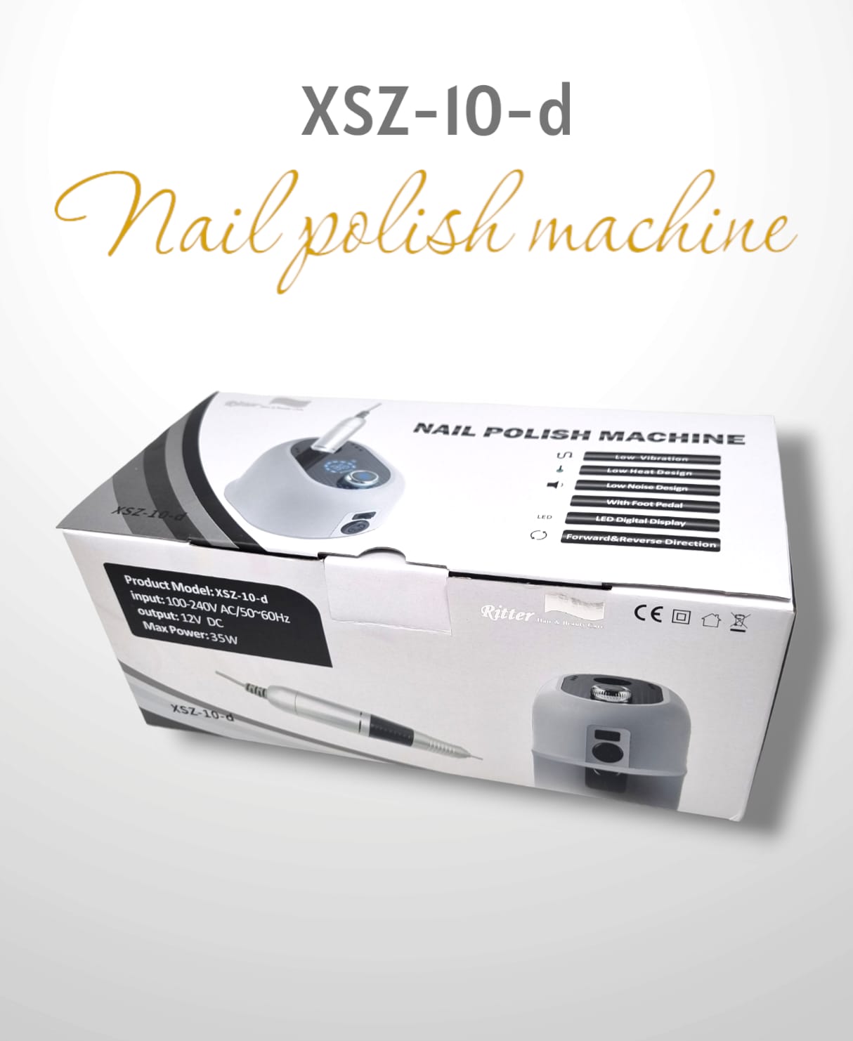 מכונת שיוף ריטר דריל פרו מקצועית. דגם : XSZ-10D . מהירות: 35000 סל"ד. חוזק: 35 וואט. מגיע עם : דוושת רגל , סט ראשי שיוף, מעמד לידית מובנה בתוך המכונה כך שעושה עושה קומפקטית ונוחה לשימוש. המכונה בעיצוב מהמם עם צג דיגיטלי . חזקה ומהירה. מתאימה לבנות ציפורניים מקצועיות